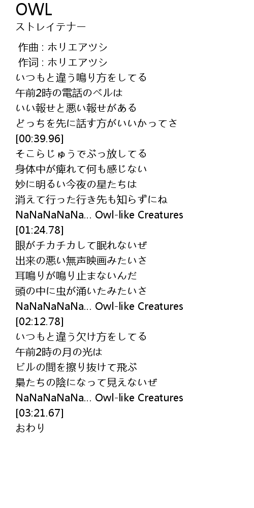 [02:59.09] NaNaNaNaNa… Owl-like Creatures