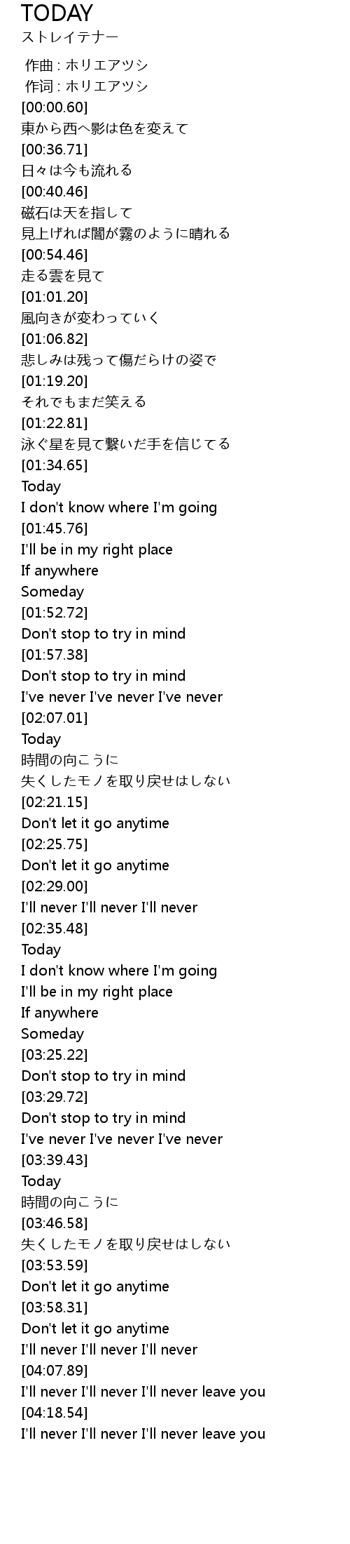 | [00:00.00] | 作曲 : ホリエアツシ |