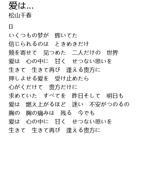 | 爱は 燃え上がるほど 迷い 不安がつのるの | |