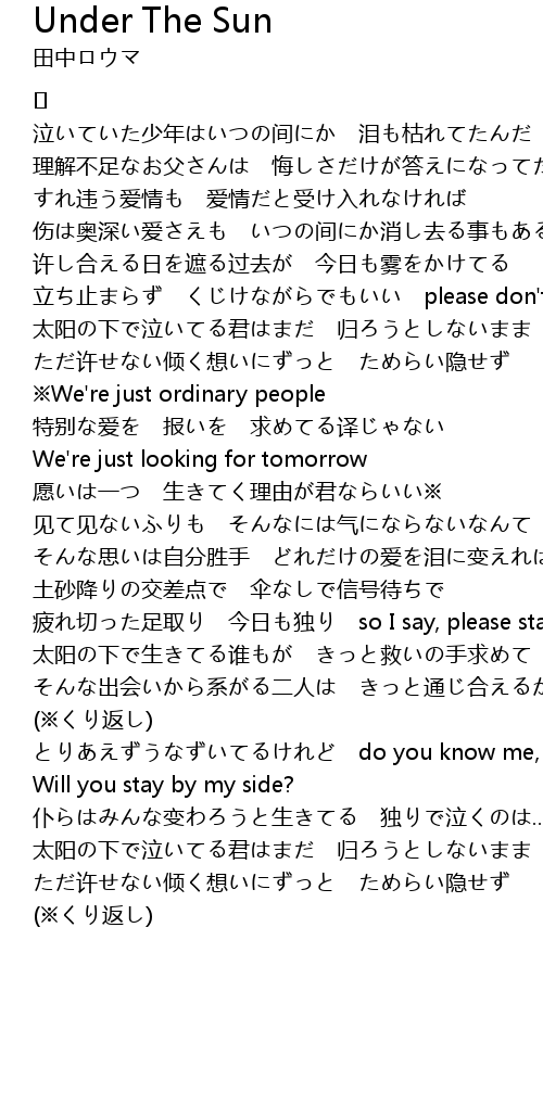 | 太阳の下で生きてる谁もが きっと救いの手求めて | |