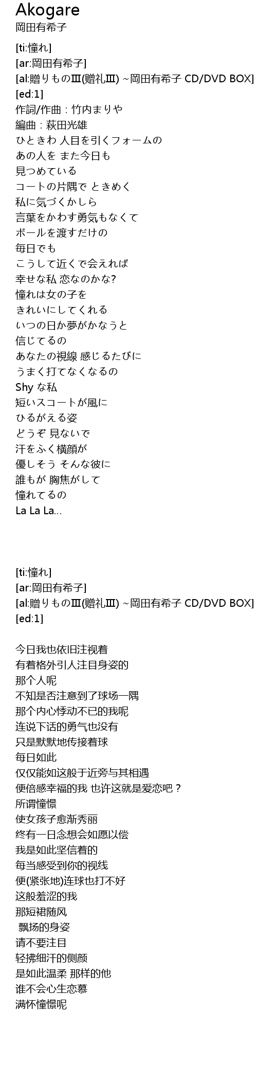 | [al:贈りものⅢ(赠礼Ⅲ) ~岡田有希子 CD/DVD BOX] | |