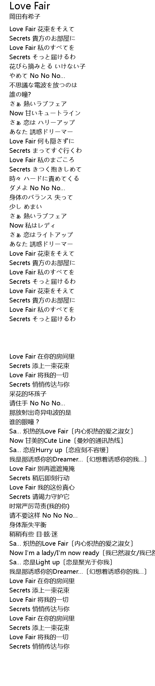 | [01:32.78] | Love Fair 何も隠さずに |