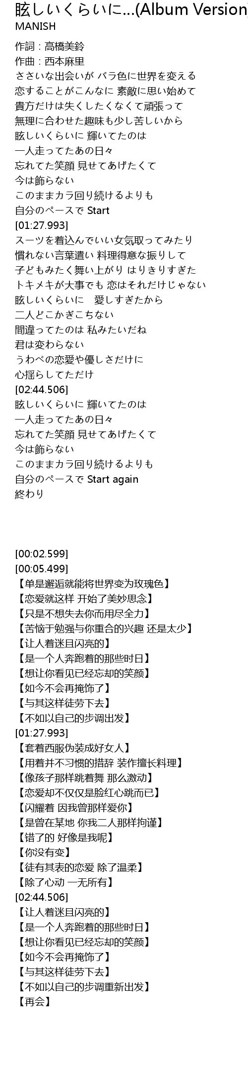 | [02:16.268] | 眩しいくらいに 愛しすぎたから |