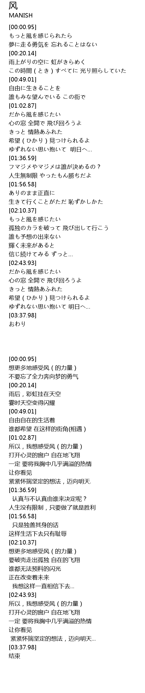 | [01:03.15] | 所以,我想感受风(的力量) |
