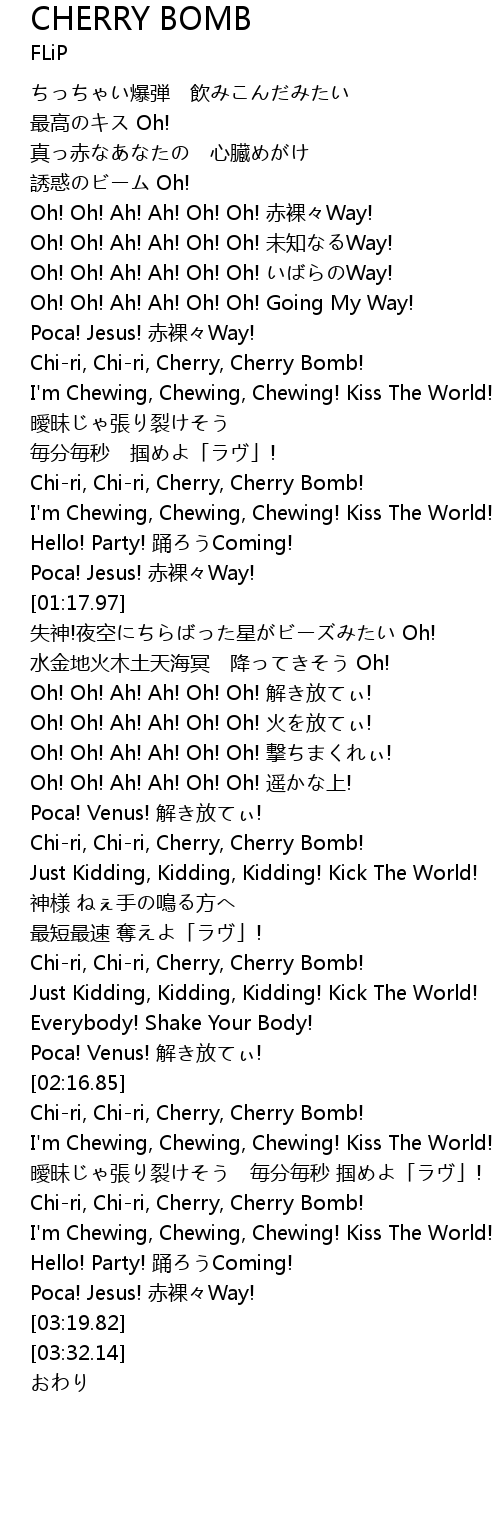 | [02:54.36] | Chi-ri, Chi-ri, Cherry, Cherry Bomb! |