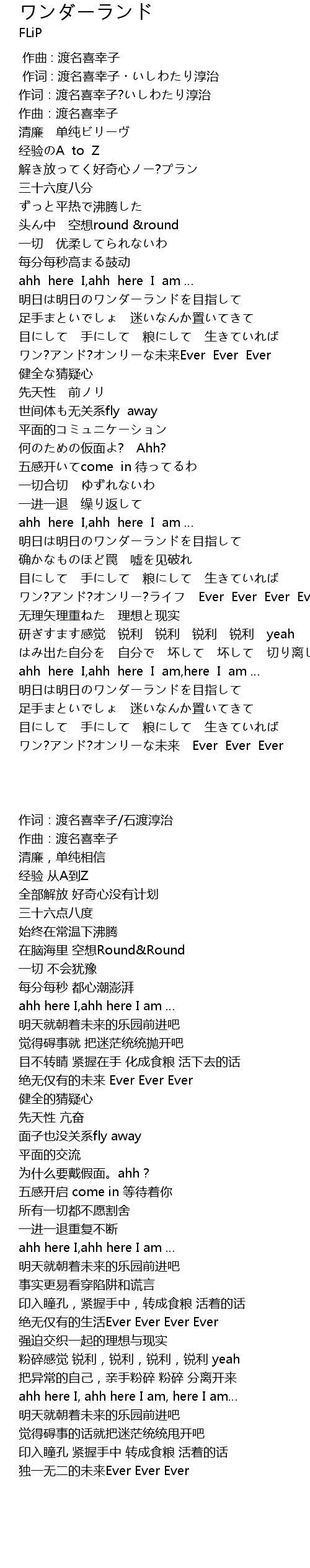 | [01:54.92] | 明日は明日のワンダーランドを目指して |