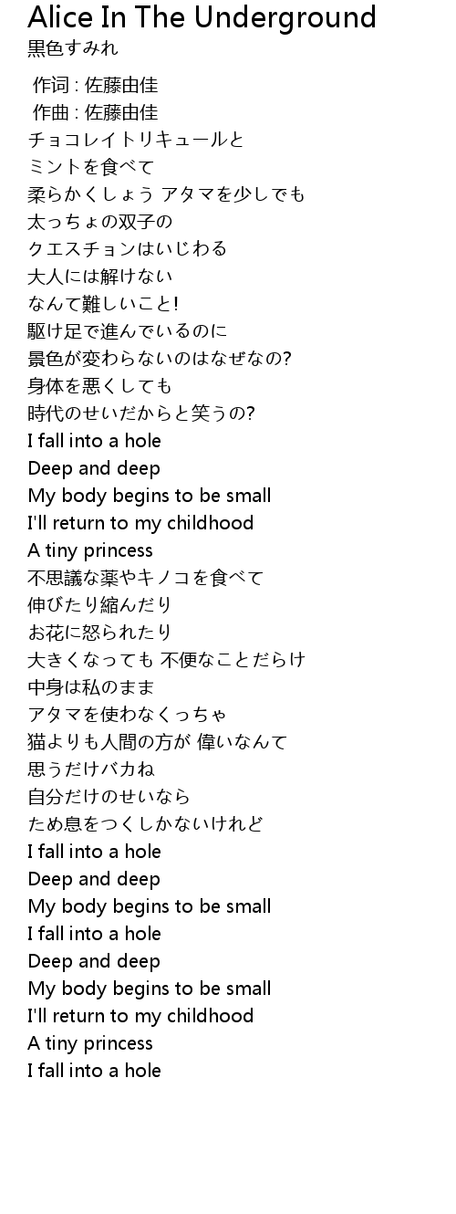 | 歌曲 | Alice In The Underground |