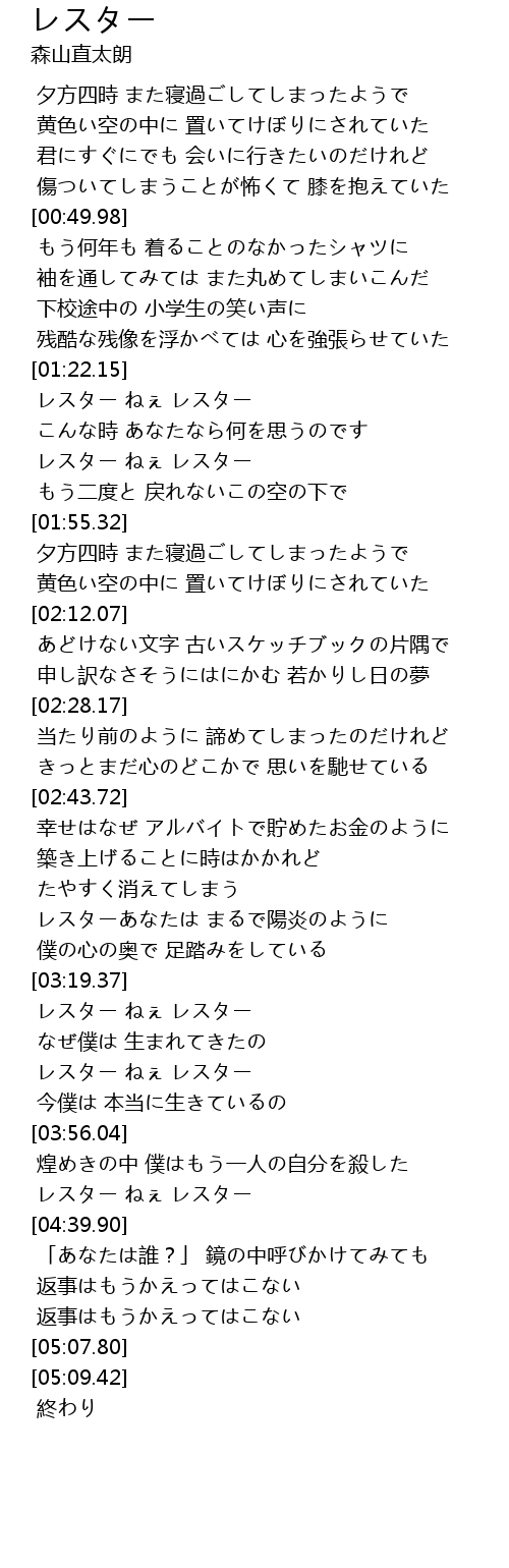| [03:04.14] | レスターあなたは まるで陽炎のように |