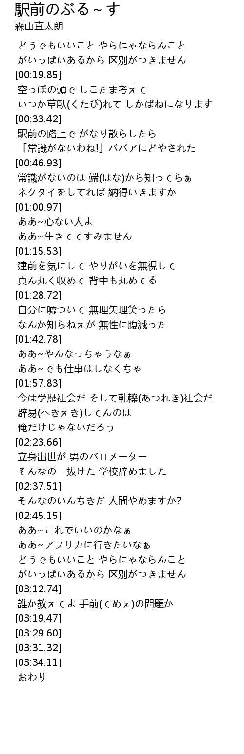 | [00:34.13] | 駅前の路上で がなり散らしたら |