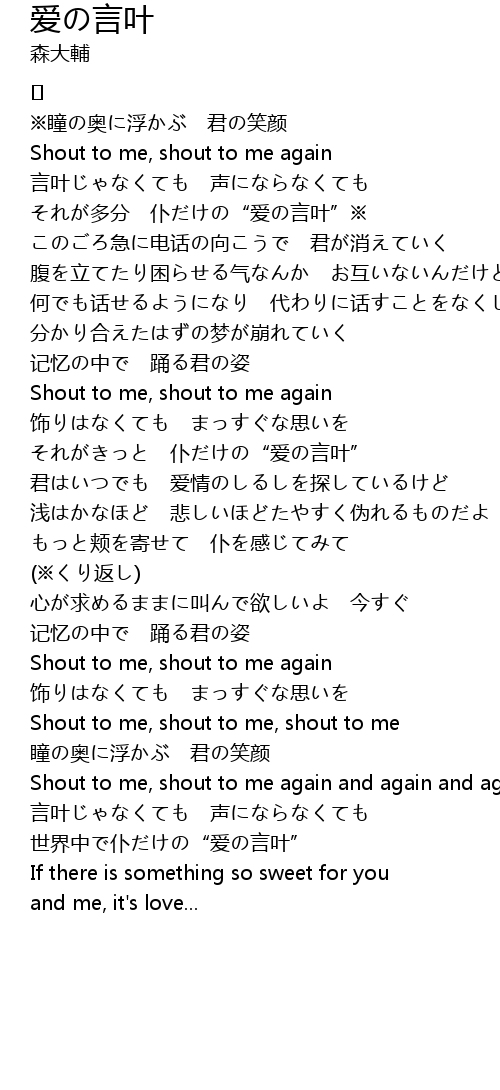 | 心が求めるままに叫んで欲しいよ 今すぐ | |
