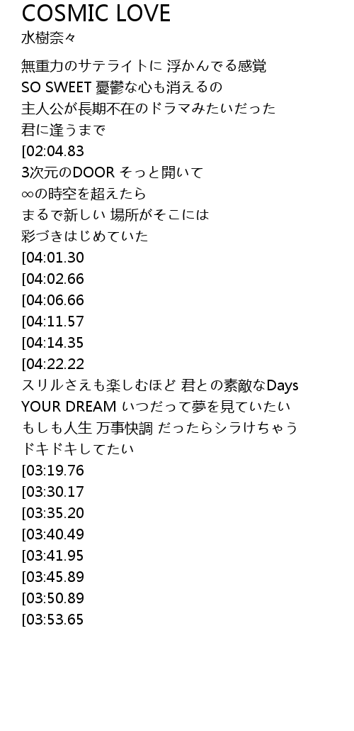 | [02:39.55][03:50.89] | BABY' BABY' LOVE 感じる? |