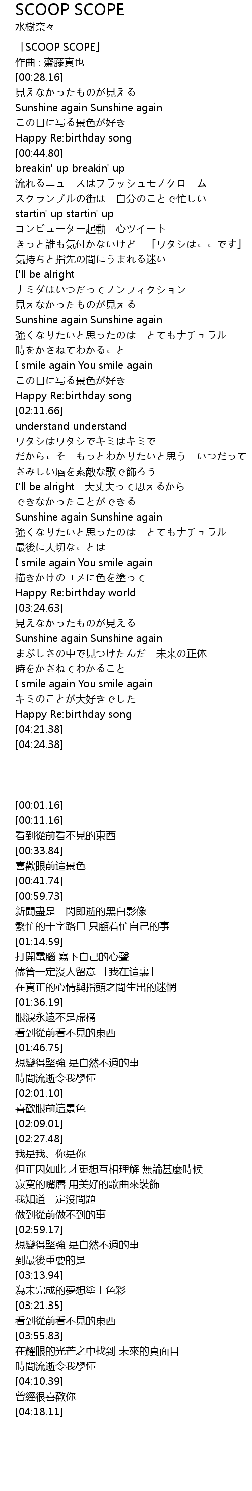 | [00:01.16] | 「SCOOP SCOPE」 |