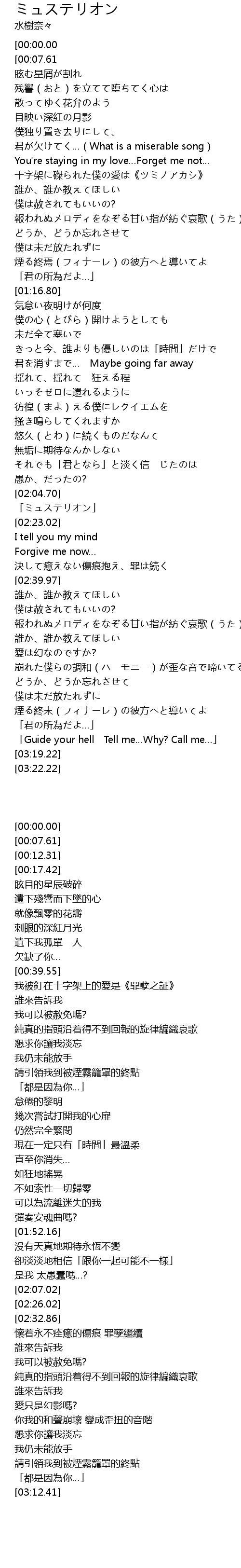 | [00:12.31][00:00.00] | Guide your fate Tell me Why? |