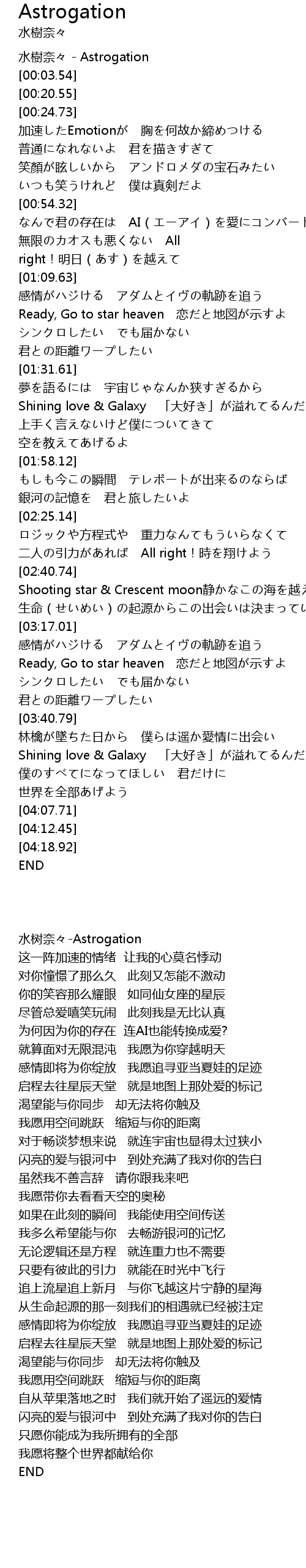 | [02:18.58] | 銀河の記憶を 君と旅したいよ |