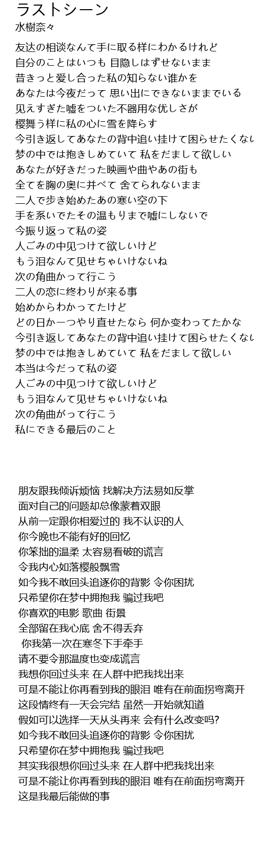 | [03:00.000] | 二人の恋に终わりが来る事 始めからわかってたけど |