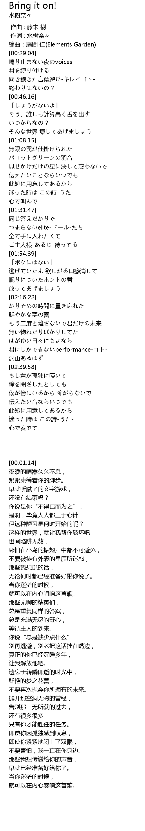 | [00:01.14] | bian qu: teng jian ren Elements Garden |