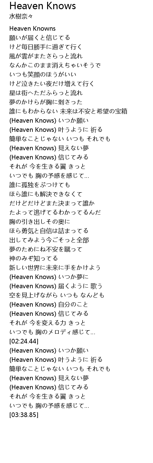 | [02:57.43] | Heaven Knows yuàn |