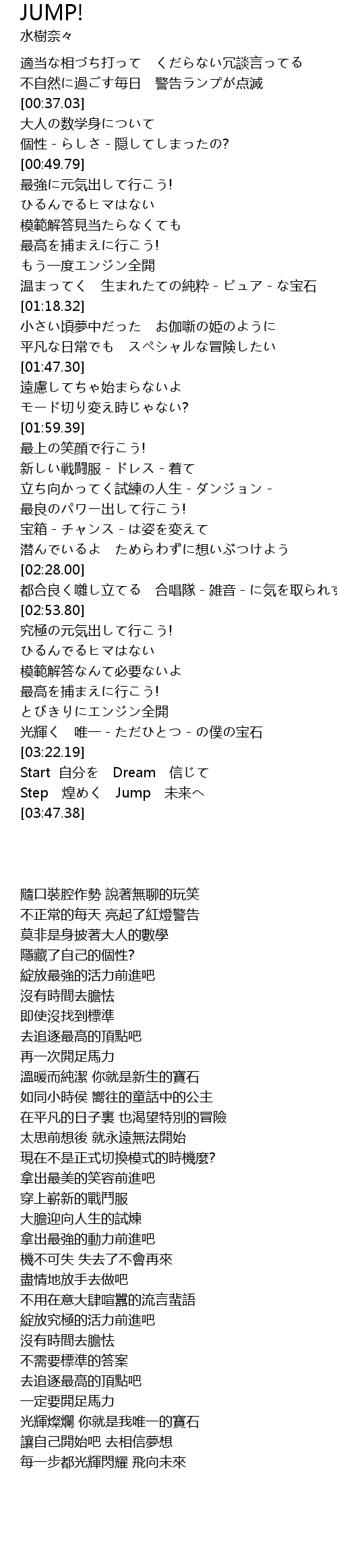 | [03:35.07] | Step 煌めく Jump 未来へ |