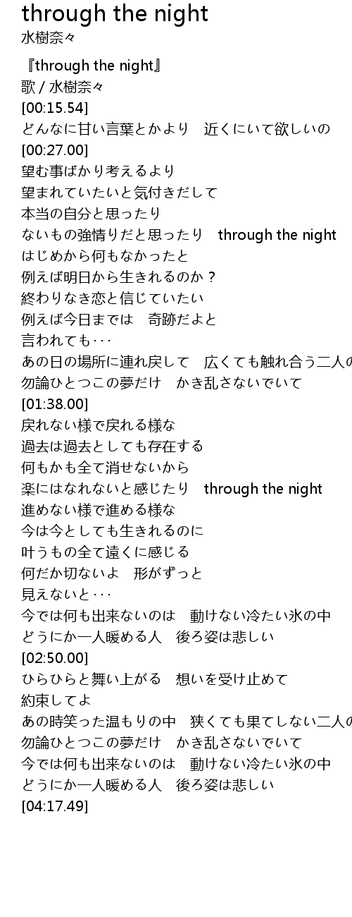 | [00:48.00] | ないもの強情りだと思ったり through the night |