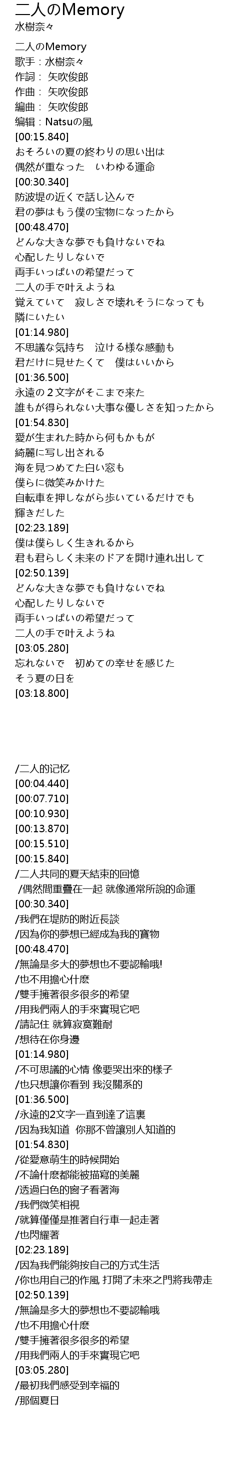 | [00:16.020] | /二人共同的夏天結束的回憶 |