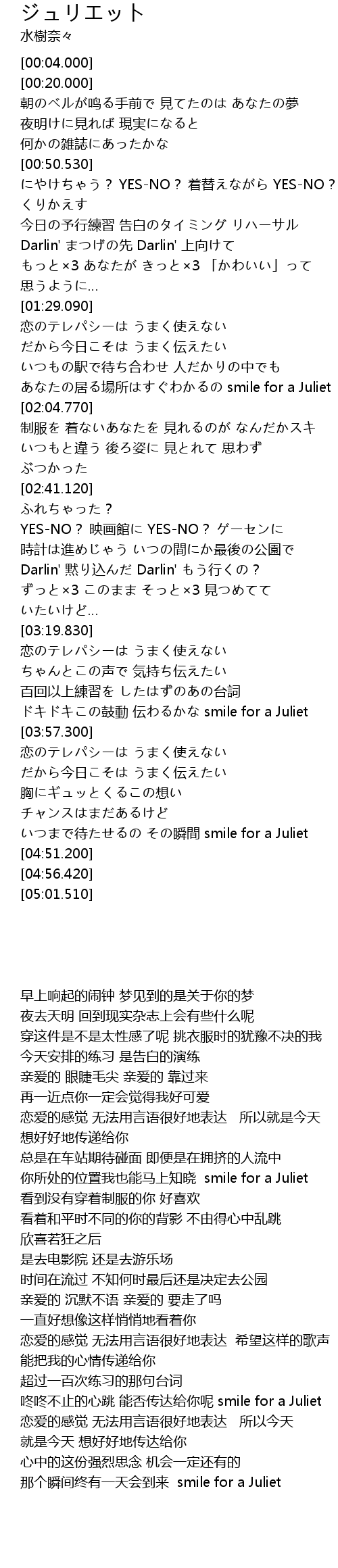 | [04:38.290] | いつまで待たせるの その瞬間 smile for a Juliet |
