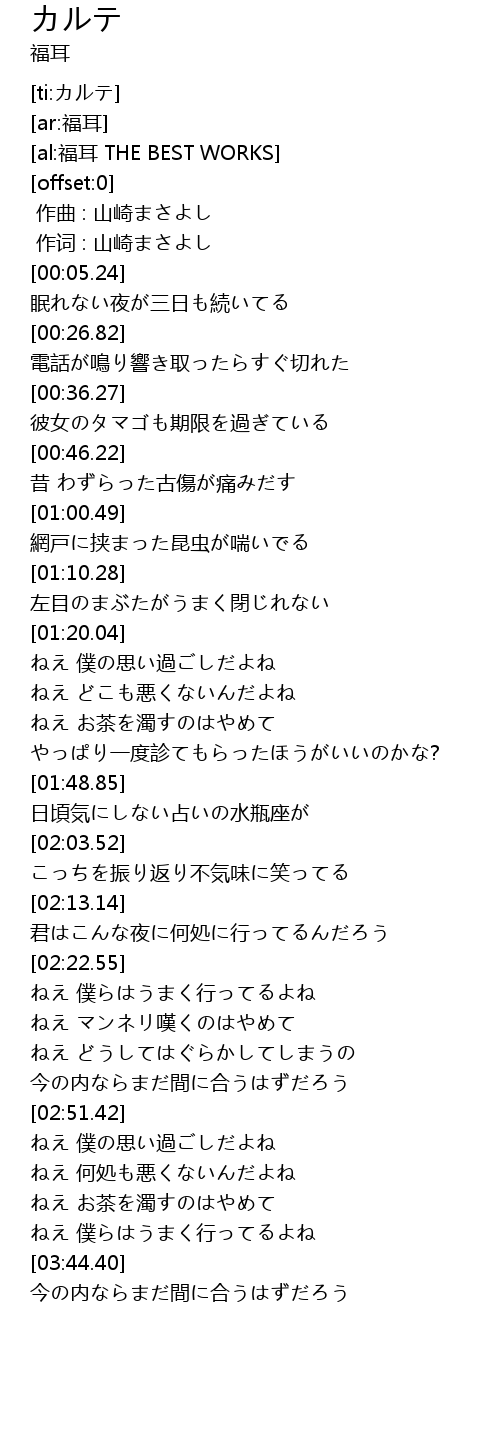 | [00:00.00] | 作曲 : 山崎まさよし |