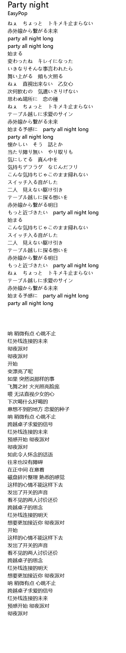 | [03:00.06] | もっと近づきたい party all night long |