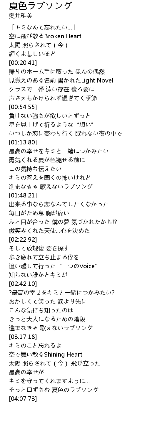 | [03:55.53] | そっと口ずさむ 夏色のラブソング |