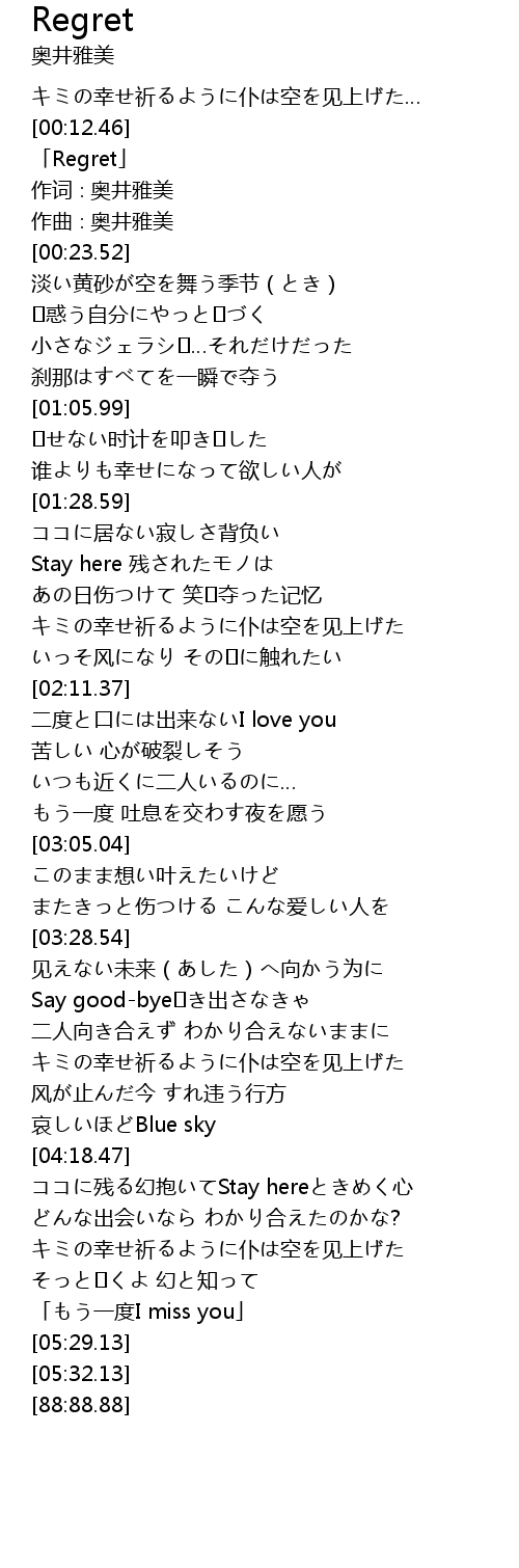 | [00:14.52] | 「Regret」 |