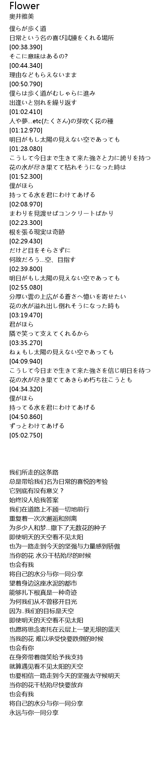 | [01:03.530] | 人や夢…etc(たくさん)の芽吹く花の種 |