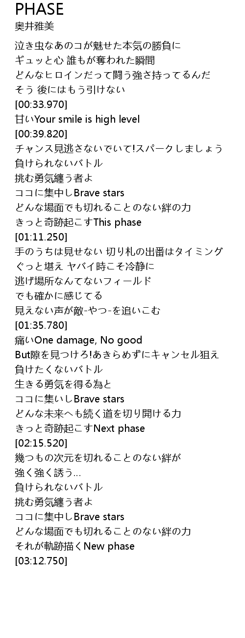 | [03:06.900] | それが軌跡描くNew phase |