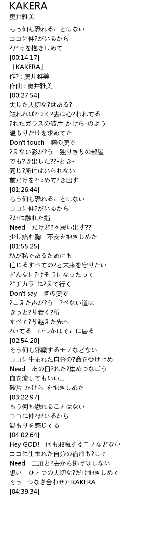 | [00:16.54] | 「KAKERA」 |
