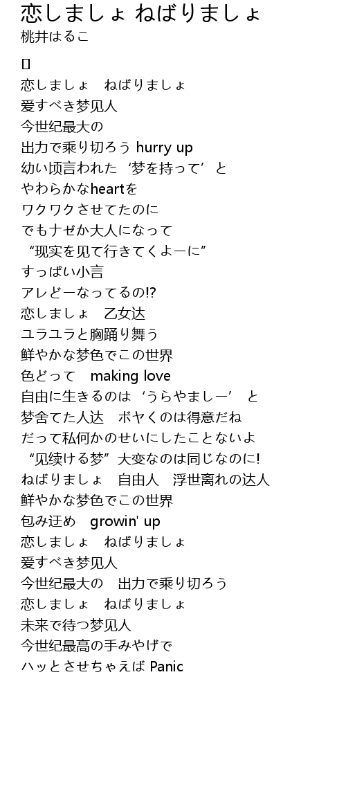| 歌曲 | 恋しましょ ねばりましょ |