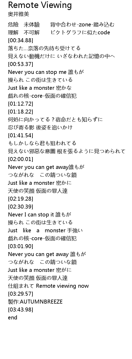 | [03:22.79] | 仕組まれて Remote viewing now |