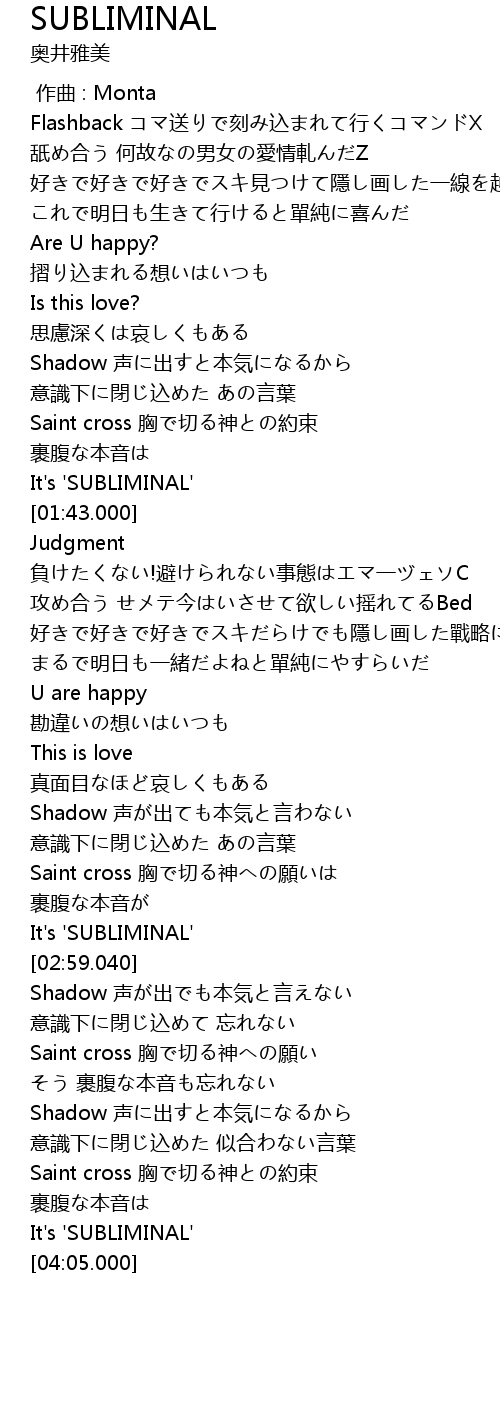 | [02:43.410] | It's 'SUBLIMINAL' |
