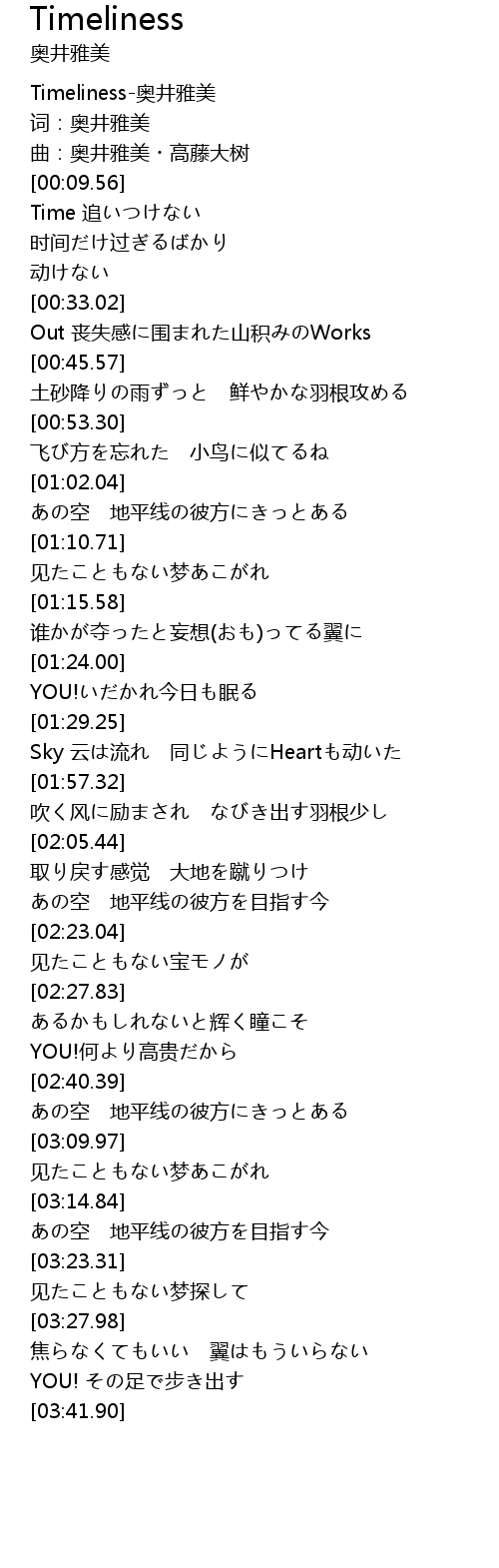| [03:30.42] | 焦らなくてもいい 翼はもういらない |
