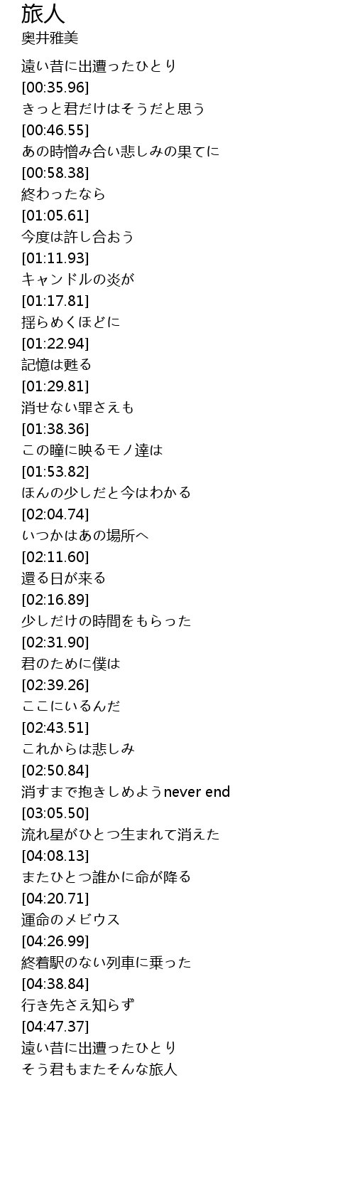 | [04:51.64] | 遠い昔に出遭ったひとり |