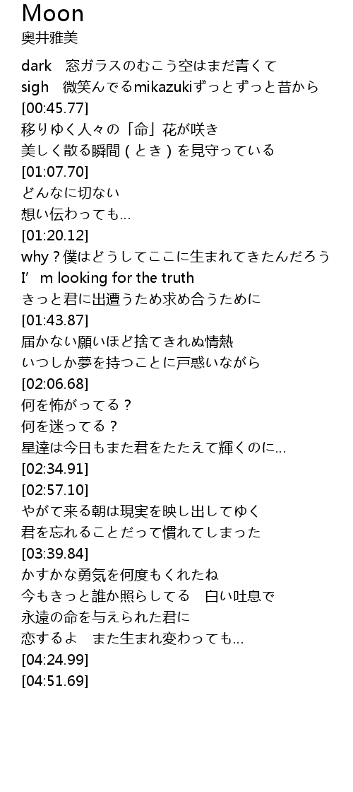 | [00:34.84] | sigh 微笑んでるmikazukiずっとずっと昔から |