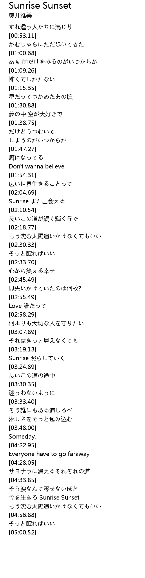 | [04:44.87] | 今を生きる Sunrise Sunset |