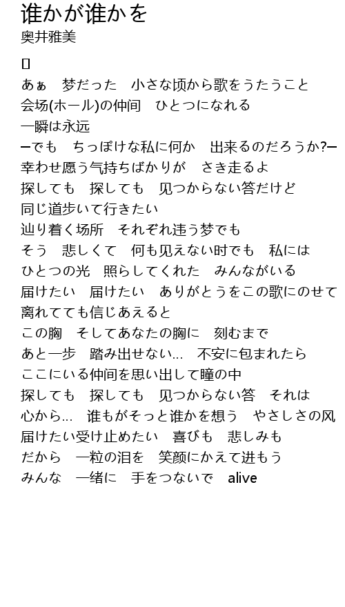 | 届けたい 届けたい ありがとうをこの歌にのせて | |