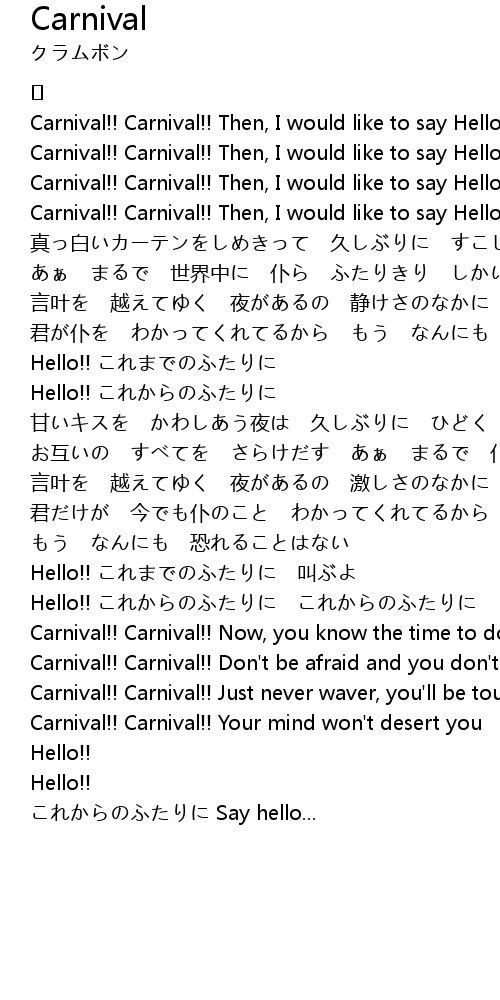 | Carnival!! Carnival!! Don' t be afraid and you don' t care | |