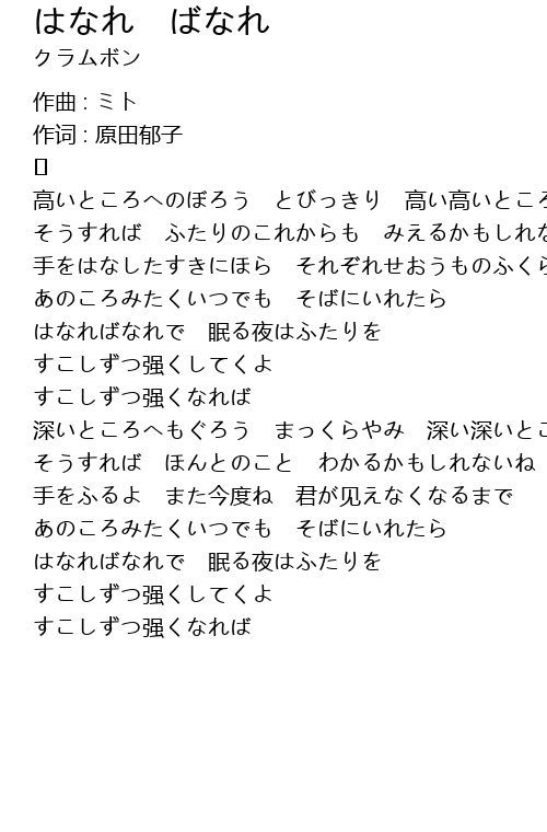 | 手をはなしたすきにほら それぞれせおうものふくらんで | |
