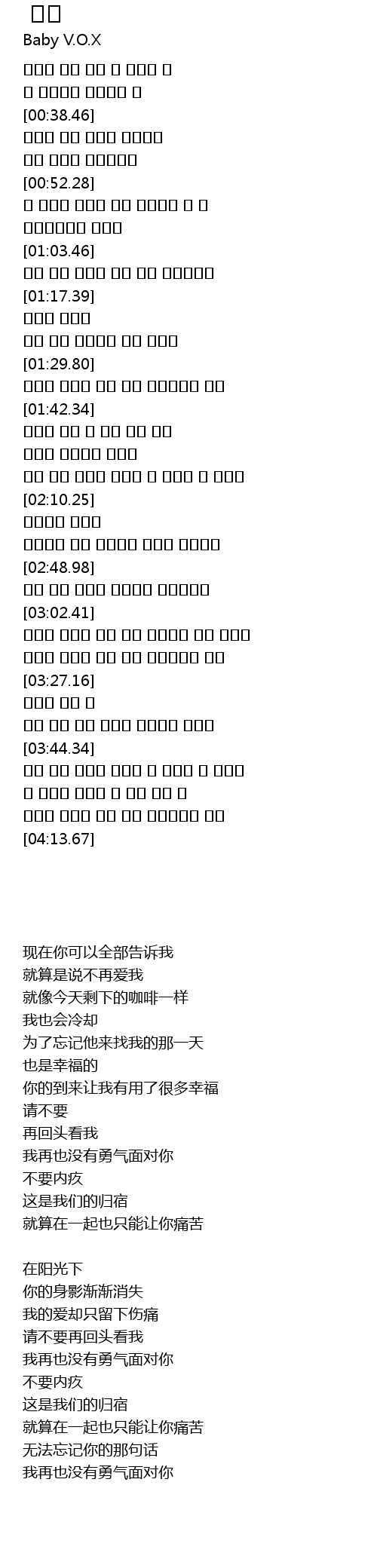| [04:03.15] | 한줄기 눈물로 가는 너를 잡아두기는 싫어 |