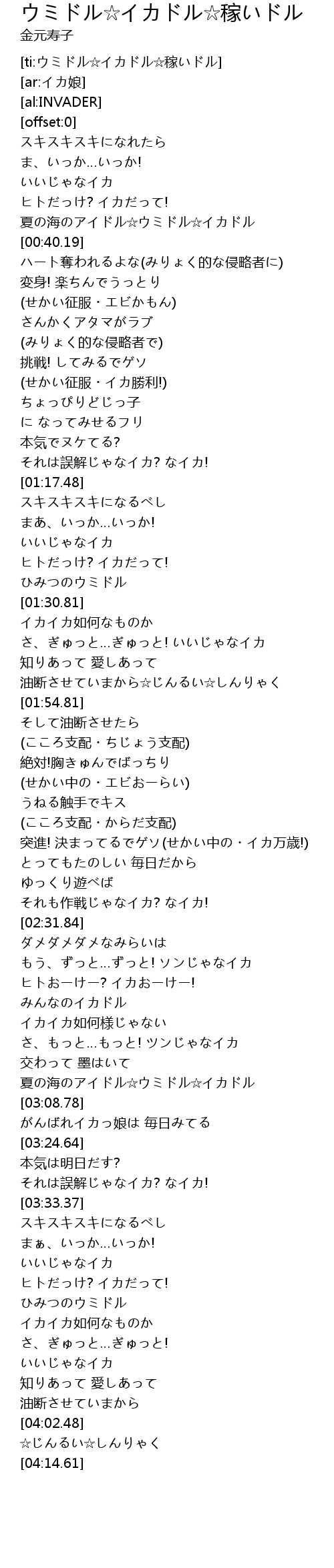 | [ti:ウミドル☆イカドル☆稼いドル] | |