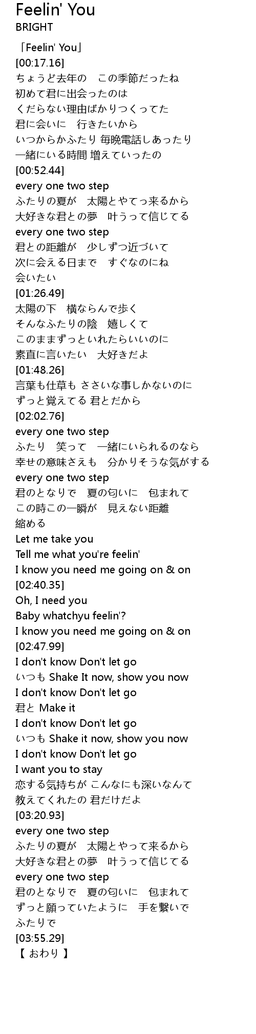 | [00:00.64] | 「Feelin' You」 |