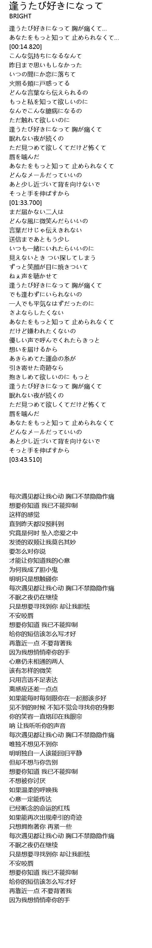 逢うたび好きになって 胸が痛くて |