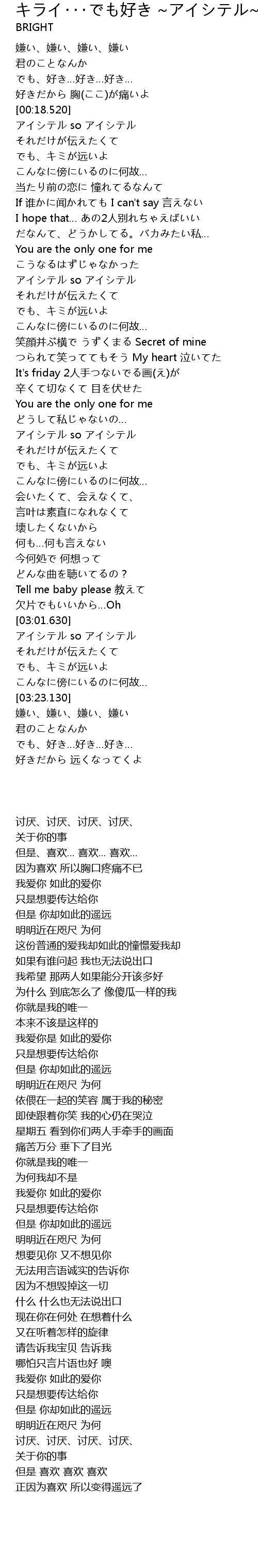 | [03:03.940] | アイシテル so アイシテル |