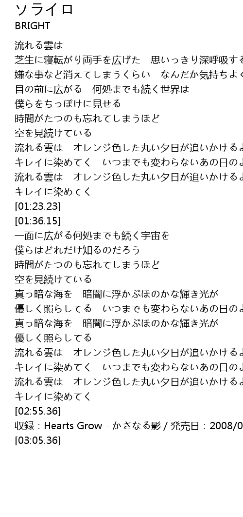 | [02:57.36] | 収録:Hearts Grow - かさなる影/発売日:2008/01/23 |
