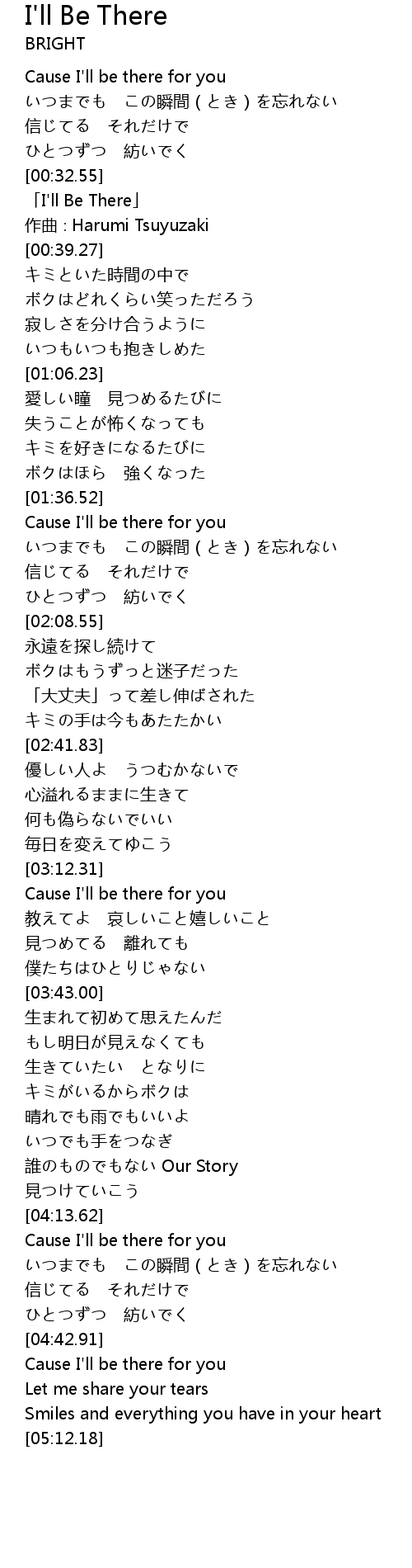 | [04:17.72] | いつまでも この瞬間(とき)を忘れない |
