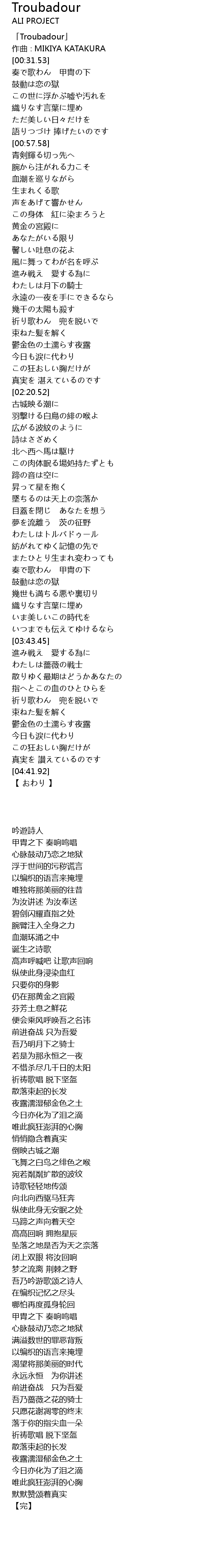 | [03:19.64] | 奏で歌わん 甲冑の下 |